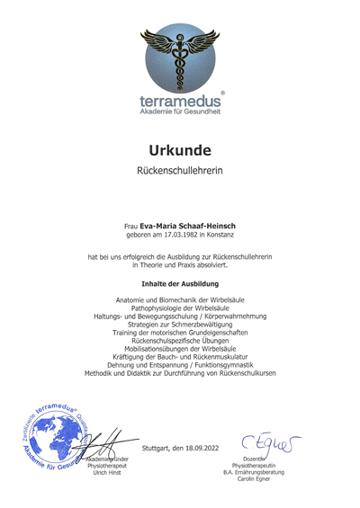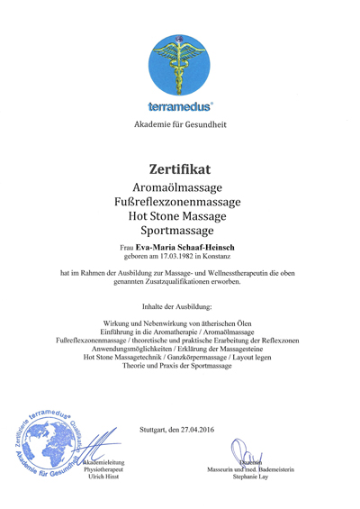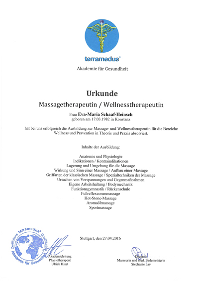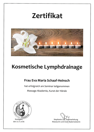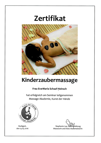 Mein Name ist Eva-Maria Schaaf-Heinsch, aber genannt werde ich schon immer Evi und habe mir mit der Ausbildung zur Massage- und Wellnesstherapeutin einen Traum erfüllt. Außerdem habe ich mich auch als Rückenschullehrerin weiterbilden lassen.
